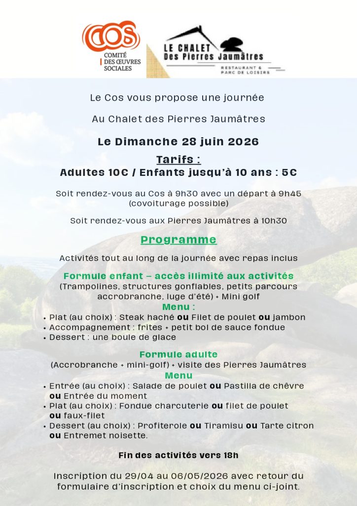 📣Rappel Inscription « JournĂ©e Pierres Jaumâtres📣 28 avril 202628 avril 2026 Categories: Communication Sports et Loisirs Formulaire Menu Ă tĂ©lĂ©charger ci-dessous Ă ramener le jour de l’inscription Formulaire MENU PIERRES JAUMĂ‚TRESTĂ©lĂ©charger Laisser une rĂ©ponse Annuler la rĂ©ponseVotre adresse e-mail ne sera pas publiĂ©e. Les champs obligatoires sont indiquĂ©s avec *Commentaire * Nom * E-mail * Site web Enregistrer mon nom, mon e-mail et mon site dans le navigateur pour mon prochain commentaire. Navigation de l’article PRECEDENT Article prĂ©cĂ©dent : Week-End Ă La RochelleSUIVANT Article suivant : Partenaires du Cos Article Connexe Commande avec « Secrets de Miel »Commande avec « Secrets de Miel » 7 novembre 20247 novembre 2024| COS MONTLUCONCOS MONTLUCON| 0 commentaire| 13h40 Un NoĂ«l Sensoriel ! Les trĂ©sors de la ruche s’invitent Read MoreRead More VENTE TICKETS PATINOIRE ET CARROUSELVENTE TICKETS PATINOIRE ET CARROUSEL 3 dĂ©cembre 20253 dĂ©cembre 2025| COS MONTLUCONCOS MONTLUCON| 0 commentaire| 14h39 Read MoreRead More